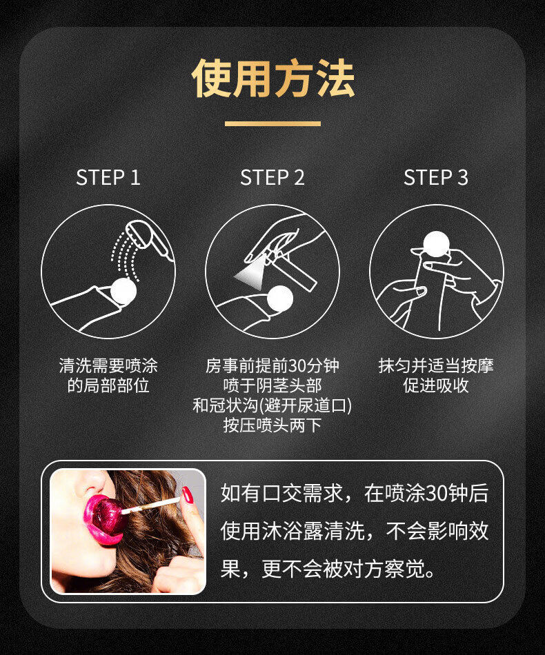 建議於 性行為前 15–30 分鐘 噴塗,效果最佳。