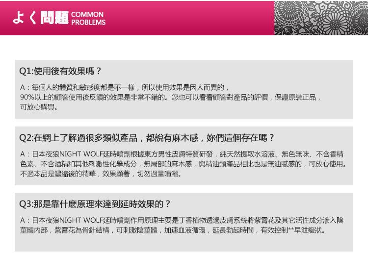 🌙 NightWolf日本夜狼成分外用延時噴劑成分與特點