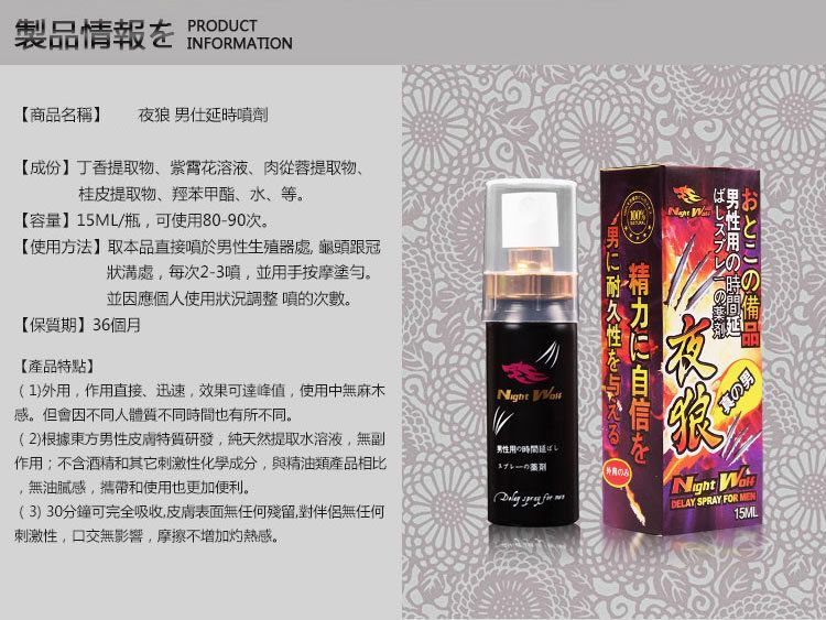 🌙 NightWolf日本夜狼成分外用延時噴劑成分與特點