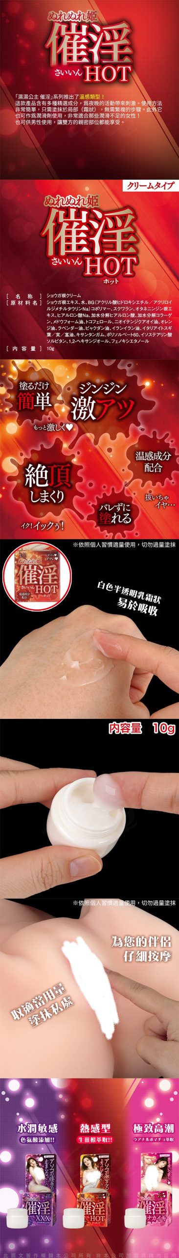 這款人氣新品催情霜以色氨酸為主要成分,混合多種精選成分,為你的夜生活注入活力,釋放淫賤的一面。使用時只需將它塗抹在局部敏感地方即,簡單方便。而且本產品塗抹均勻後能與膚色融合,不會讓任何人發現,讓你可以偷偷使用。