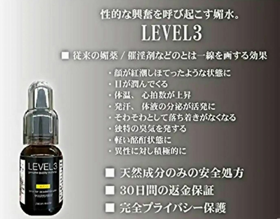 🔥LEVEL3性淫亂の媚液!日本獨特秘方!高效媚藥!高濃度配方精制而成!每次使用 (5-10ml) 將會產生驚人的增慾催淫效果!服用本品30分鐘內,女性陰內發癢,心跳加速下體分泌物增多,意念急需做愛,渴望性生活,令你隨心所欲,藥力會令大腿和小腹處舒癢無比,身體異常敏感,子宮會伴有持續性有節奏的收縮,快感陣陣,會大聲叫床。
