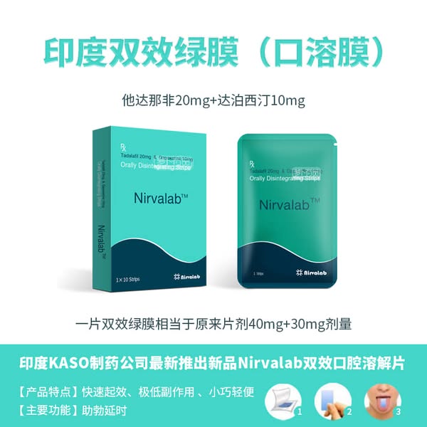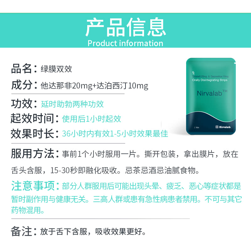 | 產品名稱 | Nirvalab 雙效綠膜(犀利士+必利勁混合口溶膜) |